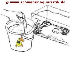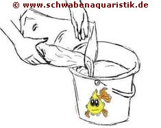 Bis zum Umsetzen der Fische sollte sich 2 bis 3-mal soviel Wasser im Eimer befinden wie vorher.