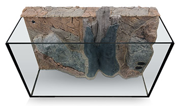 Doppeltes Schildkrötenaquarium mit zentralem Überlaufschacht und Trennscheiben mittig